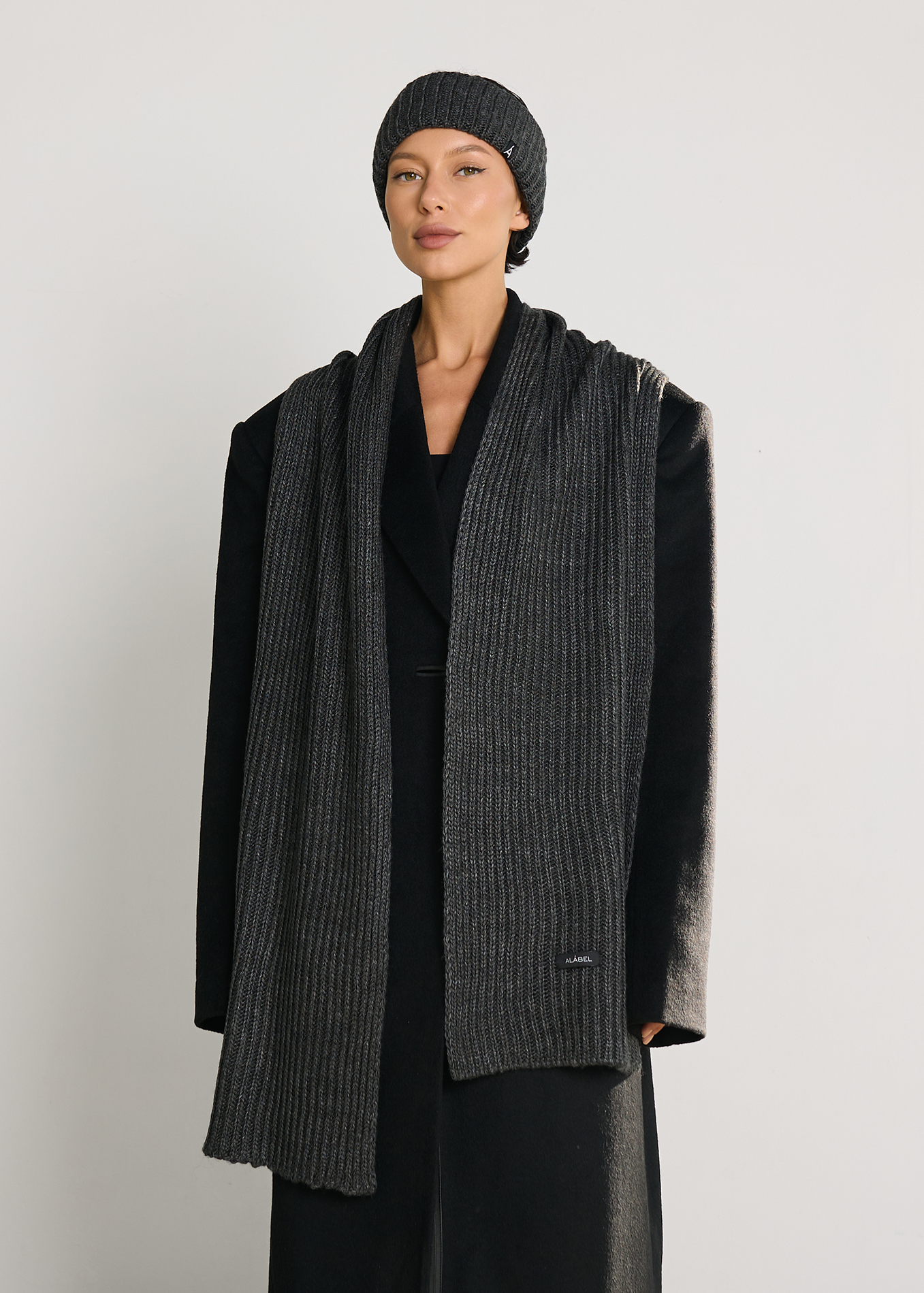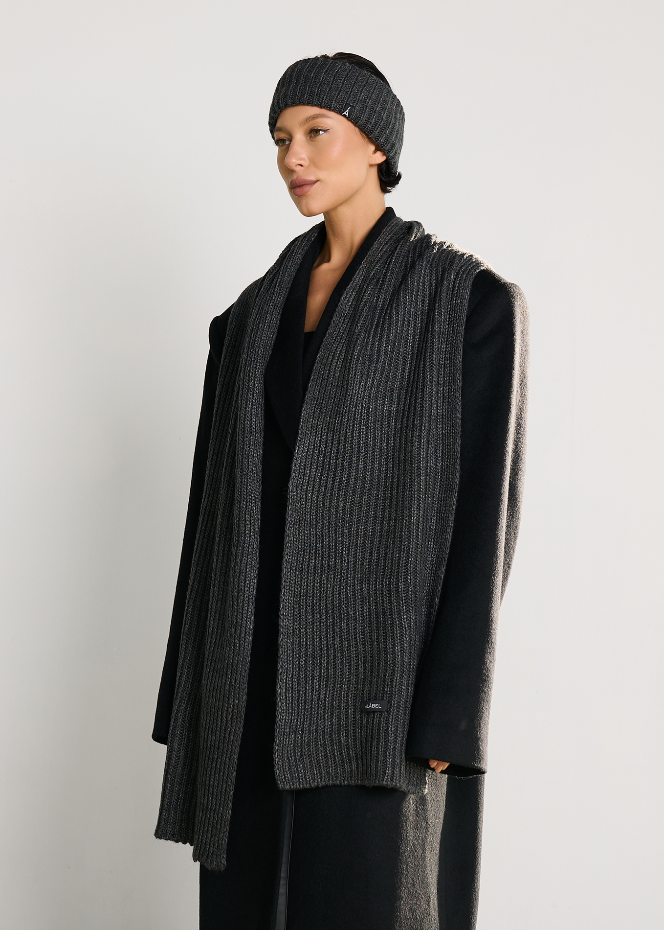 Шарф ALÁBEL — воплощение тепла и минимализма. Связан из мягкого вязаного полотна с добавлением шерсти, он легко драпируется, создавая ощущение уюта и многослойности.