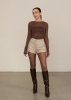 Мини-шорты из фактурной эко-кожи. Высокая посадка, боковые карманы, застёжка на молнию. Комбинируйте с пиджаком из нашей коллекции.