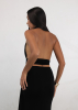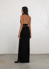 Платье макси из мягкой вискозы. Декоративные полосы ткани, ниспадающие от плеч к полу, напоминают водопад среди тропиков, добавляя образу лёгкость и динамику. Силуэт создан за счёт акцентной линии по талии и открытой спины. Платье имеет двойной слой, что гарантирует комфорт в носке.