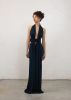 Платье макси из мягкой вискозы. Декоративные полосы ткани, ниспадающие от плеч к полу, напоминают водопад среди тропиков, добавляя образу лёгкость и динамику. Силуэт создан за счёт акцентной линии по талии и открытой спины. Платье имеет двойной слой, что гарантирует комфорт в носке.