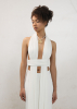 Платье макси из мягкой вискозы. Декоративные полосы ткани, ниспадающие от плеч к полу, напоминают водопад среди тропиков, добавляя образу лёгкость и динамику. Силуэт создан за счёт акцентной линии по талии и открытой спины. Платье имеет двойной слой, что гарантирует комфорт в носке.