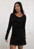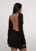 Платье мини из тонкого трикотажа. Ассиметричный ворот, удлиненные рукава, открытая спинка – идеальный вариант для отдыха и летних прогулок.