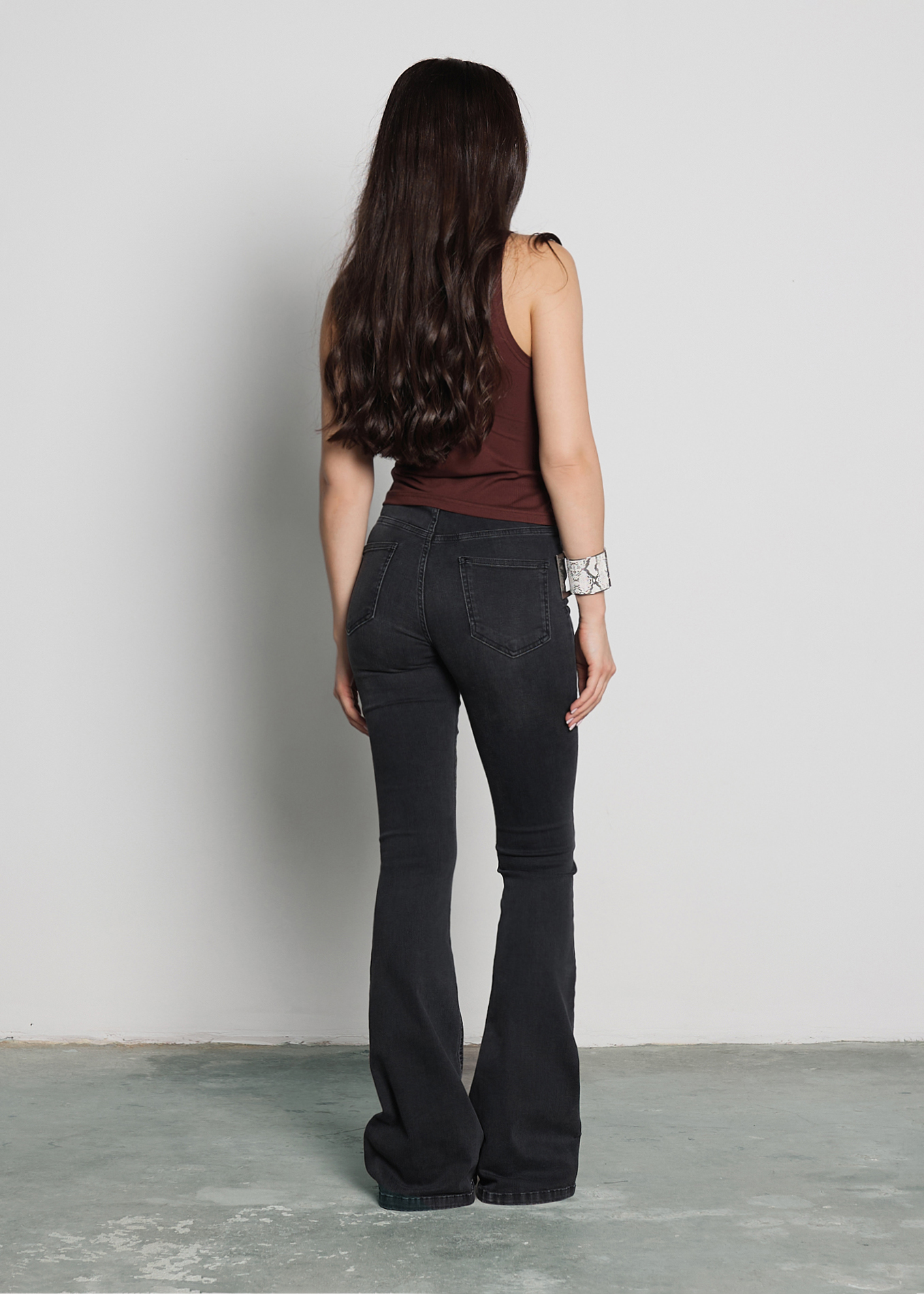 Джинсы Idol - стильный акцент вашего образа. Изделие выполнено с элементами клеш и завышенной талией, что позволяет сексуально подчеркнуть фигуру. Глубокий черный цвет создает выразительный контраст и комфорт для любого случая. Идеально сочетается с любым изделием нашей коллекции.
