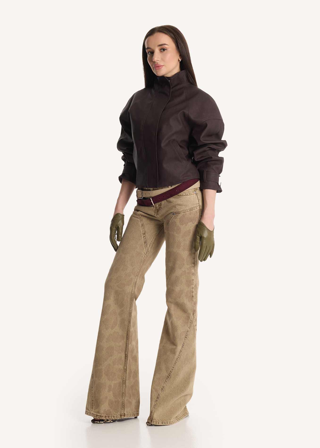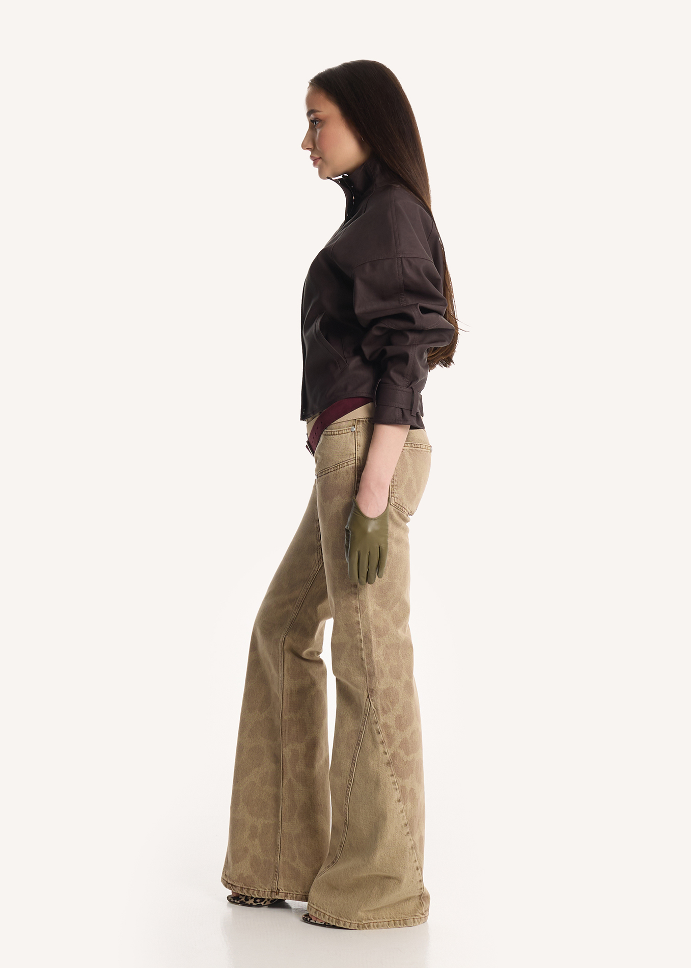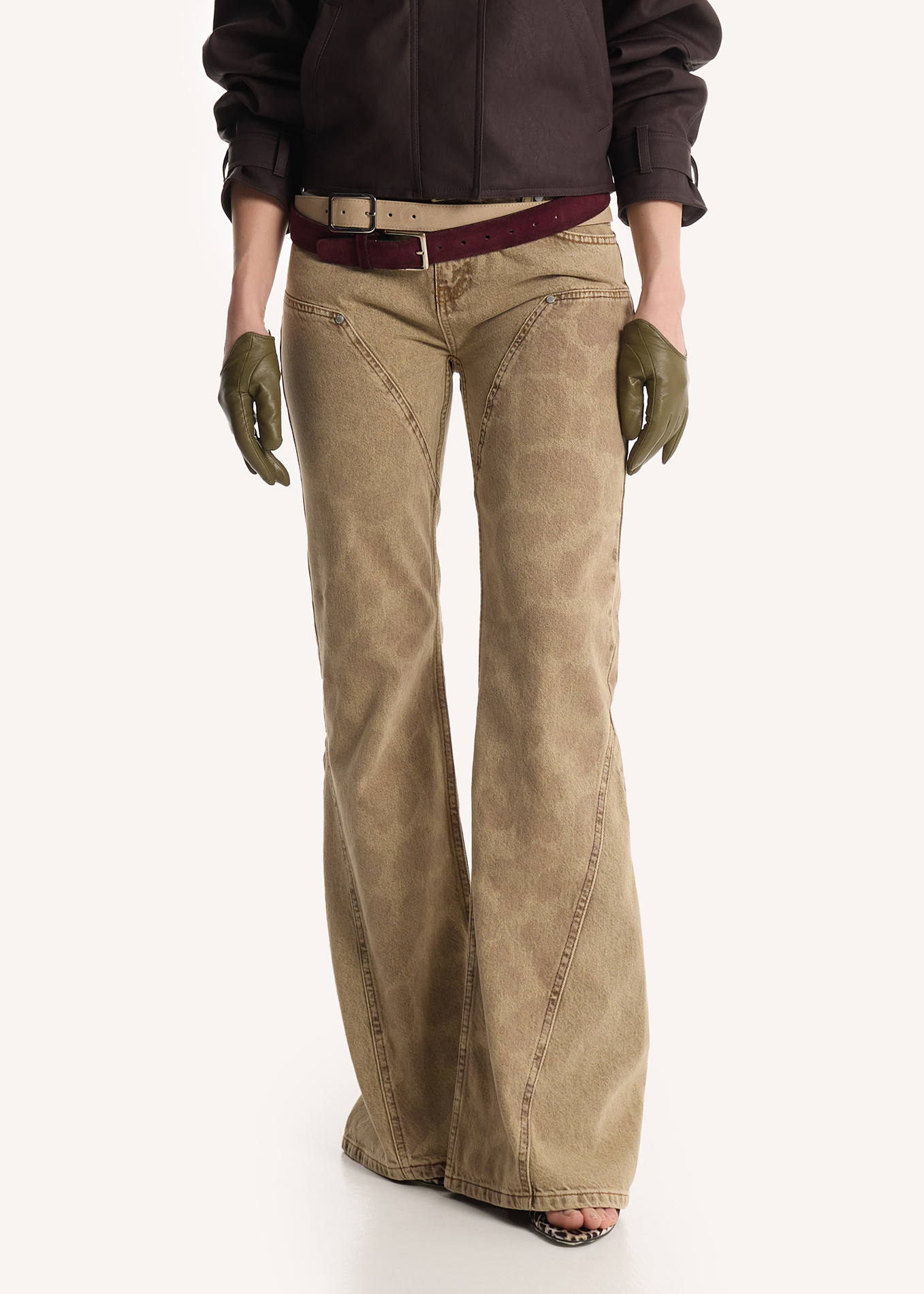 Джинсы в теплом бежевом оттенке с деликатным леопардовым принтом — как акцент, который делает образ сложнее и интереснее, но остаётся носибельным каждый день.