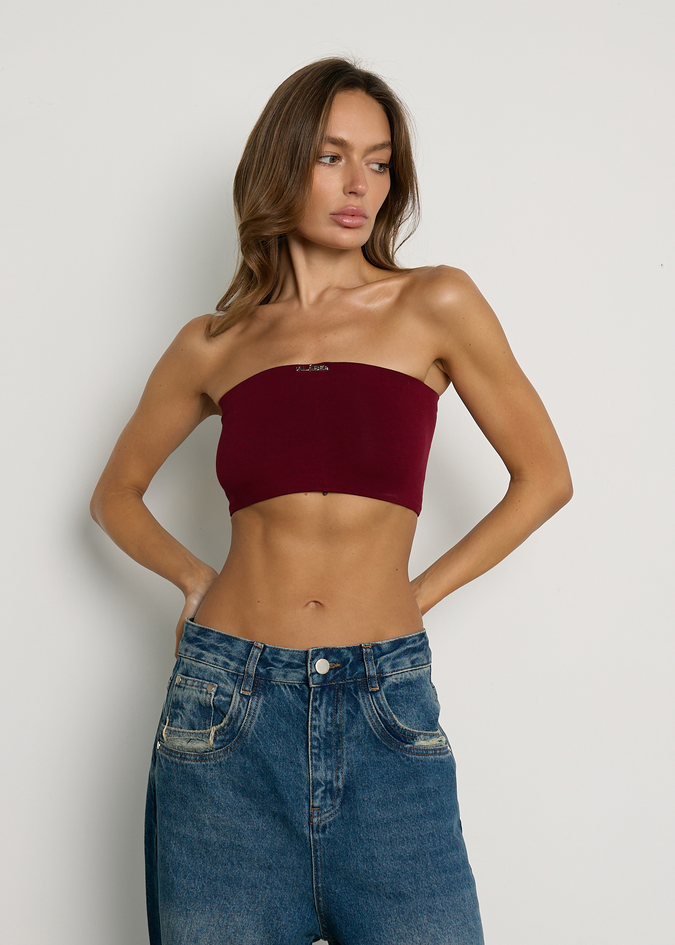 Топ-бандо из мягкой вискозы с резинкой по верху и низу изделия.