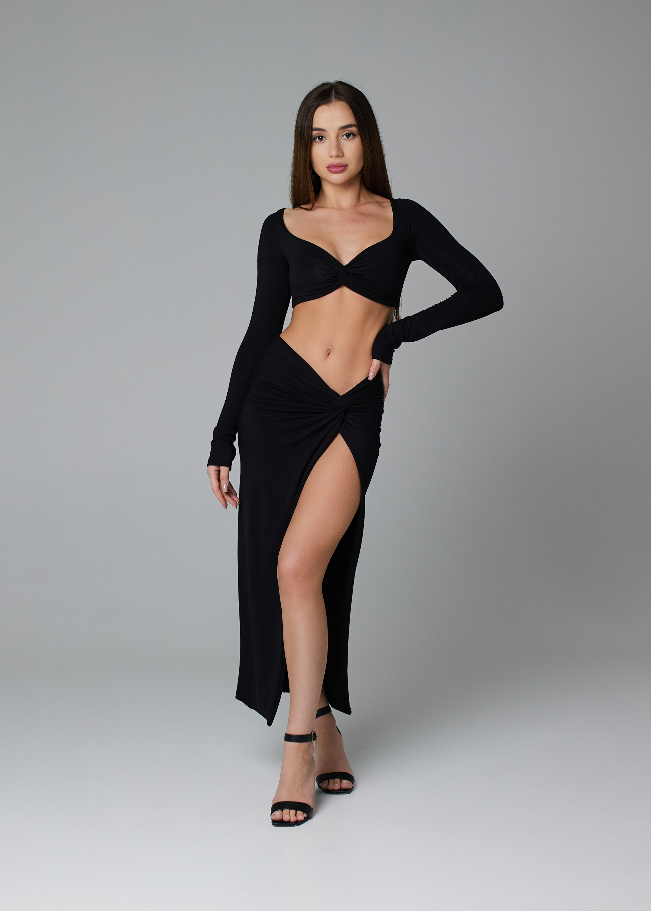 Костюм JUNE - укороченный топ с длинным рукавом и юбка с разрезом из вискозы премиум качества.